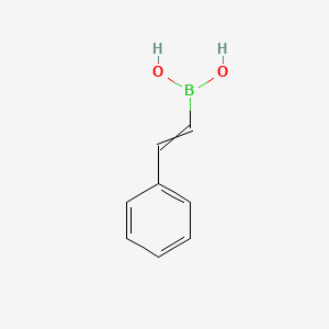 The journey of this compound from a chemical curiosity to a key synthetic intermediate mirrors the broader evolution of organoboron chemistry. wikipedia.org Early work focused on the fundamental synthesis and reactivity of organoboranes. A common and effective method for preparing vinylic boronic acids is the hydroboration of alkynes. rsc.org For instance, the reaction of phenylacetylene (B144264) with catecholborane, followed by hydrolysis, yields (E)-styrylboronic acid. scholaris.ca