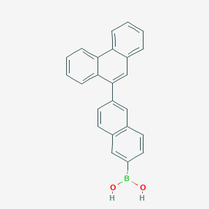 B-[6-(9-phenanthrenyl)-2-naphthalenyl]-boronic acid is an organic compound that belongs to the class of boronic acids. It is characterized by the presence of a boronic acid group attached to a naphthalene ring, which is further substituted with a phenanthrene moiety. This compound is of significant interest in organic synthesis and materials science due to its unique structural features and reactivity.