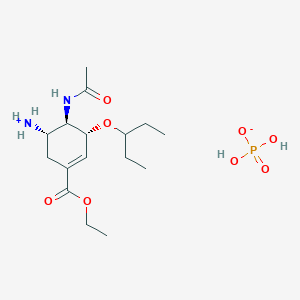 InChI=1S/C16H28N2O4/c1-5-12(6-2)22-14-9-11(16(20)21-7-3)8-13(17)15(14)18-10(4)19/h9,12-15H,5-8,17H2,1-4H3,(H,18,19)/t13-,14+,15+/m0/s1 | |