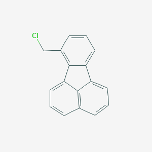 The solvolysis of these compounds has been studied in various solvent systems, including aqueous dioxane and aqueous formic acid. The rates of these reactions are influenced by the position of the chloromethyl group on the fluoranthene ring system, which in turn affects the stability of the carbocation intermediate formed during the reaction. The delocalization of the positive charge across the polycyclic aromatic framework plays a crucial role in determining the reactivity. It is known that the mutagenic activities of bromomethyl- and chloromethylfluoranthenes are related to their reactivities, which can be estimated by electronic structure calculations.