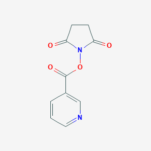 The mechanism by which Nicotinic Acid N-Hydroxysuccinimide Ester exerts its effects involves the formation of stable amide bonds with nucleophiles such as amines. This reaction is facilitated by the activation of the carboxyl group of nicotinic acid by N-hydroxysuccinimide, making it more reactive towards nucleophiles . The ester group acts as a leaving group, allowing the formation of the amide bond .