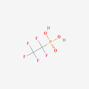 Pentafluoroethylphosphonic acid (C2H2F5O3P) is a synthetic organophosphorus compound belonging to the class of per- and polyfluoroalkyl substances (PFAS). Its structure, featuring a fully fluorinated ethyl chain attached to a phosphonic acid moiety, imparts unique chemical and physical properties. While specific research on this compound is limited, its structural similarity to other short-chain perfluoroalkyl phosphonic acids (PFPAs) and fluorinated phosphonates suggests potential applications in materials science and as a subject of interest in environmental and toxicological studies. This guide provides a comprehensive overview of the known properties, analytical methodologies, and potential biological activities of this compound, drawing on data from closely related compounds to fill existing knowledge gaps.