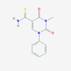 The mechanism of action of 3-Methyl-2,4-dioxo-1-phenyl-1,2,3,4-tetrahydropyrimidine-5-carbothioamide involves its interaction with specific molecular targets. The compound can bind to enzymes or receptors, modulating their activity and leading to various biological effects. The exact pathways and targets depend on the specific application and the biological system being studied.