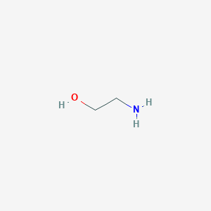 this compound is typically synthesized via the reaction of ammonia with ethylene oxide, followed by purification through fractional distillation. Characterization involves nuclear magnetic resonance (NMR) for structural confirmation and gas chromatography (GC) to verify purity (≥99.5%) . For lipid-related studies, this compound derivatives like phosphatidylthis compound are synthesized enzymatically or via chemical acylation, with mass spectrometry (MS) used to validate molecular weight and isotopic patterns .