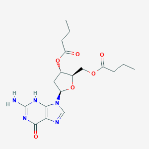 The synthesis of 2'-Deoxyguanosine 3',5'-Dibutanoate primarily involves the selective acylation of the hydroxyl groups on the sugar moiety of 2'-deoxyguanosine. This process requires careful consideration of protecting group strategies to ensure that the desired esterification occurs at the 3' and 5' positions without unwanted side reactions on the guanine (B1146940) base.
