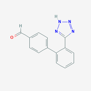 One of the notable applications of 2'-(1H-tetrazol-5-yl)-1,1'-biphenyl-4-carboxaldehyde is as an impurity in the synthesis of Losartan, an antihypertensive medication. The tetrazole ring is crucial for the pharmacological activity of Losartan, which acts as an angiotensin II receptor blocker (ARB) to manage hypertension effectively. The presence of this compound as an impurity in formulations has led to extensive studies on its impact on drug efficacy and safety profiles .