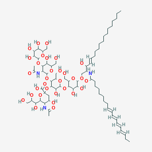 5-acetamido-2-[5-[3-acetamido-5-hydroxy-6-(hydroxymethyl)-4-[3,4,5-trihydroxy-6-(hydroxymethyl)oxan-2-yl]oxyoxan-2-yl]oxy-2-[4,5-dihydroxy-2-(hydroxymethyl)-6-[(E)-3-hydroxy-2-[[(9E,11E,13E,15E)-octadeca-9,11,13,15-tetraenoyl]amino]octadec-4-enoxy]oxan-3-yl]oxy-3-hydroxy-6-(hydroxymethyl)oxan-4-yl]oxy-4-hydroxy-6-(1,2,3-trihydroxypropyl)oxane-2-carboxylic acid |