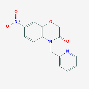 The mechanism of action of 7-Nitro-4-(pyridin-2-ylmethyl)-2H-benzo[b][1,4]oxazin-3(4H)-one depends on its application. For instance, as an enzyme inhibitor, it may bind to the active site of the enzyme, blocking substrate access and thus inhibiting enzyme activity. The nitro group can participate in redox reactions, influencing the compound’s reactivity and interaction with biological targets.