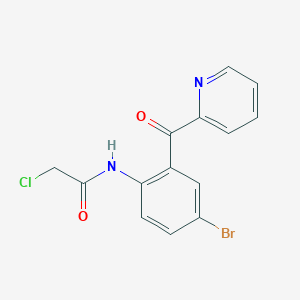 The synthesis of this compound typically involves the reaction of 4-bromo-2-(pyridin-2-carbonyl)aniline with chloroacetyl chloride. The reaction is usually conducted in an organic solvent like dichloromethane under controlled conditions to optimize yield and purity .
