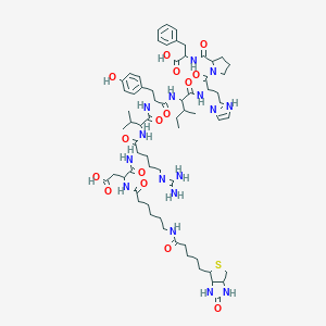 Functionally, the core Angiotensin II sequence within this compound retains its ability to bind to and activate the Angiotensin II receptor, thus acting as an agonist. portlandpress.comnih.gov The key functional differentiation arises from the presence of the biotin group. This allows for the specific and high-affinity binding of this compound to streptavidin and avidin (B1170675) proteins. portlandpress.com This property is not present in native Angiotensin II and forms the basis for the use of this compound in a variety of biochemical applications, including enzyme-linked immunosorbent assays (ELISAs), affinity chromatography for receptor purification, and cell sorting. portlandpress.comnih.govkarger.com