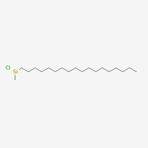 Octadecylmethylchlorosilane has emerged as a pivotal compound in the development of advanced materials, primarily owing to its ability to form robust, long-chain alkylsilane self-assembled monolayers on various substrates. Its unique molecular structure, featuring a long C18 hydrocarbon tail and a reactive chlorosilane headgroup, enables the precise engineering of surface properties. This has led to significant advancements in fields ranging from analytical chemistry to materials science, particularly in the creation of specialized chromatographic stationary phases and surfaces with controlled wettability.