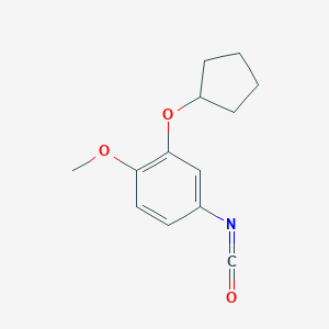 The mechanism of action of 3-Cyclopentoxy-4-methoxyphenylisocyanate involves its reactivity with nucleophiles. The isocyanate group is highly electrophilic and readily reacts with nucleophiles to form stable products. This reactivity is exploited in various applications, such as the modification of proteins or the synthesis of ureas and carbamates. The molecular targets and pathways involved depend on the specific nucleophile and the context of the reaction.