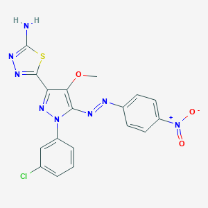 5-(1-(3-Chlorophenyl)-4-methoxy-5-(4-nitrophenylazo)-1H-pyrazol-3-yl)-1,3,4-thiadiazol-2-amine, also known as this compound, is a useful research compound. Its molecular formula is C18H13ClN8O3S and its molecular weight is 456.9 g/mol. The purity is usually 95%.