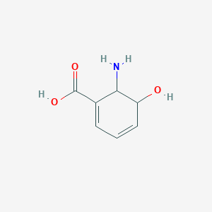 The mechanism by which 6-Amino-5-hydroxycyclohexa-1,3-diene-1-carboxylic acid exerts its effects involves its interaction with specific enzymes and metabolic pathways. The compound acts as a chiral catalyst in various chemical reactions, influencing the stereochemistry of the products formed . Its molecular targets include enzymes involved in the biosynthesis of aromatic compounds, where it plays a role in the conversion of chorismate to other intermediates .