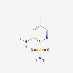 3-Amino-5-methylpyridine-2-sulfonamide exhibits notable antibacterial properties, making it a candidate for developing drugs targeting bacterial infections. It functions as an inhibitor of enzymes such as dihydropteroate synthetase , which is crucial in bacterial folate synthesis. By mimicking p-aminobenzoic acid (PABA), this compound competes for binding sites on the enzyme, disrupting bacterial growth and multiplication.