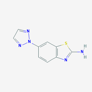 The compound's IUPAC name is 6-(triazol-2-yl)-1,3-benzothiazol-2-amine, with a molecular formula of C9H7N5S. Its structure includes a triazole ring which is known for its ability to interact with various biological targets.