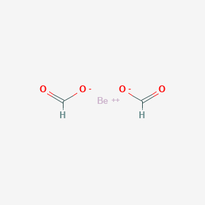 Beryllium formate, with the chemical formula Be(HCOO)₂, is a salt formed from the beryllium cation (Be²⁺) and the formate anion (HCOO⁻) ontosight.ai. Research has established its synthesis primarily through the reaction of beryllium hydroxide (B78521) or beryllium carbonate with formic acid ontosight.ai. Another documented synthetic route involves the insertion of carbon dioxide into a beryllium-hydride bond within a dimeric amido-beryllium hydride complex, yielding a structurally characterized this compound complex researchgate.net.