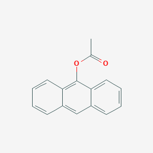 A related synthesis for a di-substituted anthracene acetate, (10-[(acetyloxy)methyl]-9-anthryl)methyl acetate, starts with 9,10-anthracenedimethanol. This precursor is then acetylated using methods such as acetyl chloride with pyridine or acetic anhydride with a catalytic amount of sulfuric acid. The choice of method can influence the yield and reaction conditions. For instance, the acetyl chloride/pyridine method in dichloromethane (B109758) proceeds at 0°C with yields of 92–95%, while the acetic anhydride/sulfuric acid method in toluene (B28343) requires reflux temperatures and yields 88–90%.