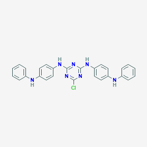 1,3,5-Triazine-2,4-diamine, 6-chloro-N,N'-bis(4-(phenylamino)phenyl)-, also known as 1,3,5-Triazine-2,4-diamine, 6-chloro-N,N'-bis(4-(phenylamino)phenyl)-, is a useful research compound. Its molecular formula is C27H22ClN7 and its molecular weight is 480 g/mol. The purity is usually 95%.