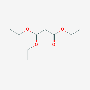 Ethyl 3,3-diethoxypropionate is a key intermediate in organic synthesis, valued for its role as a protected form of the unstable ethyl 3-oxopropanoate. orgsyn.org Its structure, featuring a diethyl acetal (B89532) group, renders it stable for storage over several months at room temperature without decomposition. orgsyn.orgresearchgate.net This stability, coupled with its reactivity, makes it an essential starting material for constructing more complex molecules. cymitquimica.com In the broader context of chemical sciences, it serves as a fundamental building block, particularly in the synthesis of heterocyclic compounds. orgsyn.org