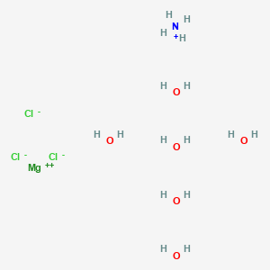 The mechanism by which ammonium magnesium chloride–water (1/1/3/6) exerts its effects involves the interaction of its constituent ions with various molecular targets. For example, in water treatment processes, the magnesium ions can interact with contaminants, facilitating their removal from the water. The ammonium ions can also play a role in maintaining the acid-base balance in certain applications .