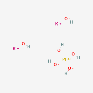 Platinate (Pt(OH)6^2-), dipotassium, (OC-6-11)-, also known as potassium hexahydroxyplatinate(IV), is a chemical compound with the molecular formula K2[Pt(OH)6]. It is a platinum-based compound that is often used in various chemical and industrial applications due to its unique properties and reactivity.
