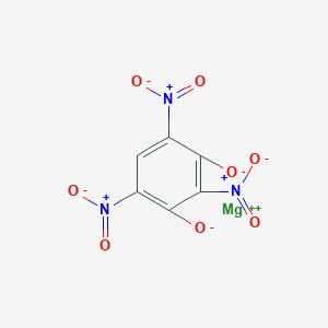 The compound is characterized by the presence of magnesium ions coordinated with 2,4,6-trinitrobenzene-1,3-diolate anions. The structural formula can be represented as follows: