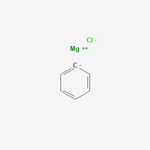 This compound (C₆H₅ClMg) is an organomagnesium compound that is highly valued for its nucleophilic character, enabling the formation of carbon-carbon bonds.[1][2] It is typically used as a solution in an ether-based solvent, commonly tetrahydrofuran (B95107) (THF) or diethyl ether (Et₂O), and appears as a yellowish-brown to dark brown solution.[3][4] The solid form is a white to light yellow, highly reactive substance that is sensitive to air and moisture.[1]