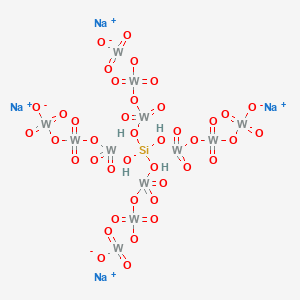 This compound is the sodium salt of silicotungstic acid, a heteropoly acid featuring the Keggin structure. The central silicon atom is tetrahedrally coordinated to four oxygen atoms, which are in turn part of a cage-like structure of twelve tungsten octahedra. This unique structure imparts properties such as high thermal stability, acidity, and catalytic activity, making it a compound of interest in various fields, including catalysis, medicine, and materials science. In the context of drug development, its potential as a drug delivery vehicle and as an antiviral or antitumor agent is being explored.