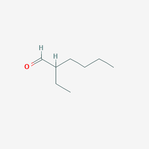 This compound is a chiral, saturated fatty aldehyde.[1][2] It is structurally defined as a heptane (B126788) molecule where a hydrogen at the 3-position is substituted by a formyl group.[2] While it exists as a racemic mixture in most applications, its specific enantiomers, such as (2R)-2-ethylhexanal, are also recognized.[1][3]