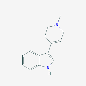 The synthesis of 3-(1-methyl-1,2,3,6-tetrahydropyridin-4-yl)-1H-indole typically involves the construction of the indole ring followed by the introduction of the 1-methyl-1,2,3,6-tetrahydropyridin-4-yl group. One common method involves the Fischer indole synthesis, where a phenylhydrazine derivative reacts with an aldehyde or ketone under acidic conditions to form the indole ring. Subsequent alkylation or acylation reactions can introduce the tetrahydropyridine moiety .