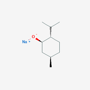 This compound is an alkoxide derived from menthol. The chemical structure is characterized by the menthyl group, a substituted cyclohexane (B81311) ring, with a sodium cation ionically bonded to the oxygen atom. The most common isomer is derived from naturally occurring (-)-menthol, which has the (1R,2S,5R) configuration.
