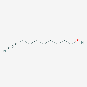 The synthesis of long-chain functionalized alkynes such as this compound is of significant interest in the field of organic chemistry. The presence of both a terminal alkyne and a primary alcohol on a ten-carbon chain makes it a versatile intermediate for introducing both hydrophobicity and reactive handles for further molecular elaboration. This guide details two distinct and effective strategies for its preparation, providing researchers with the necessary information to select the most suitable pathway based on available starting materials, desired purity, and overall yield.