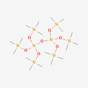 Organosilicon chemistry, a field centered around compounds containing carbon-silicon bonds, has given rise to a vast array of materials with unique properties. Among these, siloxanes, which are characterized by a Si-O-Si linkage, form the backbone of silicones. scribd.comwikipedia.org These materials can range from low-viscosity fluids to rigid resins, with their properties dictated by the molecular architecture. silicones.eu Hexakis(trimethylsiloxy)disiloxane, with the chemical formula C₁₈H₅₄O₈Si₈, is a specific, highly branched oligosiloxane. nii.ac.jp Its structure consists of a central disiloxane (B77578) core to which six trimethylsiloxy groups are attached. This high degree of branching and well-defined structure make it a subject of interest in the study of siloxane chemistry.