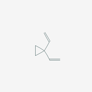 The structure of 1,1-divinylcyclopropane is characterized by a highly strained three-membered ring with two vinyl groups attached to the same carbon atom. This geminal substitution pattern distinguishes it from its more commonly studied isomer, 1,2-divinylcyclopropane. The bond angles within the cyclopropane ring are significantly distorted from the ideal sp³ hybrid angle of 109.5°, leading to substantial ring strain, which is a key driver of its reactivity.