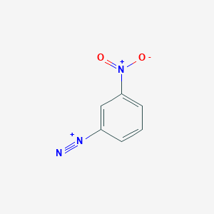 3-Nitrobenzenediazonium refers to a class of diazonium salts derived from 3-nitroaniline. These compounds are characterized by a diazonium group (-N₂⁺) attached to a nitro-substituted benzene ring. A common derivative is this compound chloride (C₆H₄ClN₃O₂, MW: 185.57), synthesized via diazotization of 3-nitroaniline using sodium nitrite (NaNO₂) and sulfuric acid, followed by coupling reactions . These salts are critical intermediates in organic synthesis, enabling the introduction of aryl groups into substrates like ferrocene (e.g., 3-nitrophenylferrocene synthesis) or fluorinated aromatics (via Balz-Schiemann reactions) .