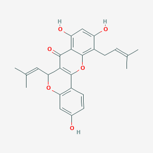 This compound is a complex, bioactive prenylated flavonoid found in various species of the Moraceae family, particularly in mulberry (Morus spp.).[1][2] Structurally, it is classified as a Diels-Alder type adduct, possessing a unique polycyclic skeleton derived from the cyclization of simpler flavonoid precursors.[1] These compounds, along with other prenylated flavonoids, are of significant interest to researchers and drug development professionals due to their diverse and potent pharmacological activities, including anti-inflammatory, anti-cancer, and antioxidant properties.[3][4][5][6] The presence of the lipophilic prenyl group often enhances the biological efficacy of the flavonoid backbone.[3][4]