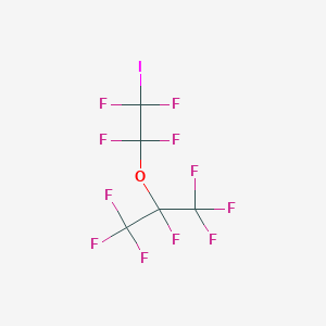 2-Iodotetrafluoroethyl heptafluoroisopropyl ether (CAS: 16005-38-2) is a fluorinated ether compound with the molecular formula C₆F₁₁IO. It is characterized by a tetrafluoroethyl group bonded to an iodine atom and a heptafluoroisopropyl ether moiety. This compound is primarily used in specialized chemical syntheses, particularly as an intermediate in pharmaceuticals, agrochemicals, and electronics manufacturing . Its unique structure, combining iodine and fluorine substituents, imparts high thermal stability and lipophilicity, making it valuable in reactions requiring halogen exchange or fluorinated intermediates.
