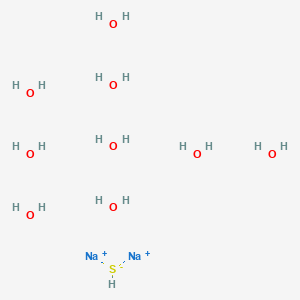 Hydrated sulfides, such as sodium sulfide (B99878) nonahydrate, play a crucial role in modern chemical systems due to their ability to act as a source of sulfide ions (S²⁻) in aqueous environments. This property is fundamental to numerous applications, including the synthesis of metal sulfide nanoparticles and the treatment of wastewater by precipitating heavy metal ions. haramaya.edu.ettaylorandfrancis.com The water of hydration in these compounds is not merely a passive component; it influences the crystal structure and reactivity of the salt. wikipedia.org For instance, the nonahydrate form of sodium sulfide has a specific crystal structure where the sulfide anion is hydrogen-bonded to water molecules, which is critical for its role in developing advanced materials like semiconductors. wikipedia.orgpubcompare.ai The unique hydration structure facilitates complex ionic interactions that are pivotal in emerging nanotechnology and advanced material synthesis. pubcompare.ai