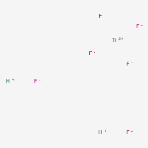 BenchChem offers high-quality Titanate(2-), hexafluoro-, dihydrogen, (OC-6-11)- suitable for many research applications. Different packaging options are available to accommodate customers' requirements. Please inquire for more information about Titanate(2-), hexafluoro-, dihydrogen, (OC-6-11)- including the price, delivery time, and more detailed information at info@benchchem.com.