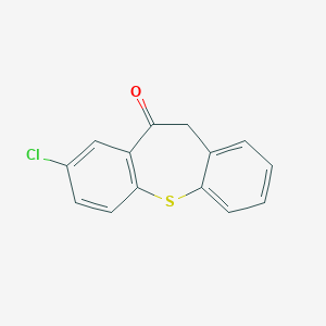 8-Chlorodibenzo[b,f]thiepin-10(11H)-one (CAS: 1469-28-9) is a heterocyclic compound with the molecular formula C₁₄H₉ClOS and a molecular weight of 260.74 g/mol . It serves as a critical intermediate in synthesizing the antipsychotic drug Zotepine (Lodopin®), where it undergoes alkylation with 2-dimethylaminoethyl chloride . The compound features a sulfur atom in the central thiepin ring and a chlorine substituent at the 8-position, which enhances its electronic and steric properties for pharmaceutical applications.