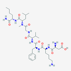 CCCCC(C(=O)N)NC(=O)C(CC(C)C)N(C)C(=O)CNC(=O)C(C(C)C)NC(=O)C(CC1=CC=CC=C1)NC(=O)C(CCCCN)NC(=O)C(CC(=O)O)N | |