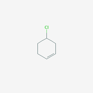 This compound is a halogenated cycloalkene characterized by a six-membered carbon ring containing one double bond and a single chlorine substituent at the allylic position (C4). The presence of a chiral center at C4 means that this compound exists as a racemic mixture of two enantiomers: (R)-4-chlorocyclohexene and (S)-4-chlorocyclohexene.