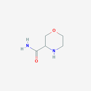 For researchers, scientists, and professionals in drug development, (S)-morpholine-3-carboxamide represents a key chiral building block. Its morpholine core is a prevalent scaffold in numerous biologically active compounds. This guide provides a detailed technical overview of a primary synthesis protocol for (S)-morpholine-3-carboxamide, commencing with the synthesis of its carboxylic acid precursor from L-serine, followed by the final amidation step.