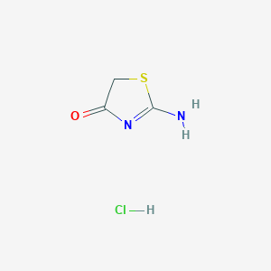 The heterocyclic compound 2-aminothiazol-4(5H)-one, often referred to as pseudothiohydantoin, and its hydrochloride salt are versatile building blocks in organic synthesis. The reactivity of this molecule is characterized by the presence of several functional groups: a reactive methylene group, a secondary amine within the thiazole ring, and an exocyclic primary amino group. These sites allow for a variety of chemical transformations, enabling the synthesis of a diverse range of substituted thiazole derivatives with potential biological activities.