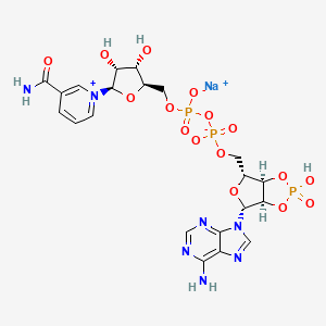 Adenosine5'-(trihydrogen diphosphate), cyclic 2',3'-(hydrogen phosphate), P'-->5'-ester with3-(aminocarbonyl)-1-b-D-ribofuranosylpyridinium inner salt, disodium salt is a useful research compound. Its molecular formula is C21H25N7NaO16P3 and its molecular weight is 747.37. The purity is usually 95%.