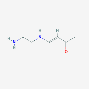 (E)-4-(2-Aminoethylamino)pent-3-en-2-one is an enaminone characterized by a β-enamino ketone backbone with an (E)-configured double bond and a 2-aminoethylamino substituent at the C4 position. Enaminones are versatile intermediates in organic synthesis, coordination chemistry, and pharmaceutical research due to their dual nucleophilic (enamine) and electrophilic (ketone) reactivity . The E configuration of the double bond influences molecular geometry, hydrogen bonding, and intermolecular interactions, which can affect solubility, stability, and reactivity.