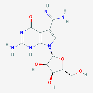 This compound is a derivative of guanosine, specifically a 7-deazaguanosine (B17050) that is further modified with a formamidine (B1211174) group at the 7-position.[2] This modification is introduced post-transcriptionally into tRNA molecules.