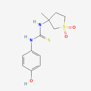 The synthesis of 1-(4-Hydroxyphenyl)-3-(3-methyl-1,1-dioxidotetrahydrothiophen-3-yl)thiourea typically involves the reaction of 4-hydroxyphenyl isothiocyanate with 3-methyl-1,1-dioxidotetrahydrothiophene-3-amine. The reaction is usually carried out in a suitable solvent such as ethanol or methanol under reflux conditions. The reaction mixture is then cooled, and the product is isolated by filtration and purified by recrystallization.
