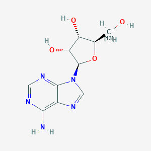 Isotopic labeling is a powerful technique used to trace the metabolic fate of molecules within biological systems. wikipedia.org The fundamental principle involves the substitution of an atom in a molecule of interest with its stable, heavier isotope. creative-proteomics.com In the case of adenosine-5'-13C, a carbon-12 atom at the 5' position of the ribose sugar in adenosine (B11128) is replaced by a carbon-13 (¹³C) atom. This substitution creates a "labeled" molecule that is chemically identical to its unlabeled counterpart but can be distinguished based on its increased mass. wikipedia.org By introducing this compound into a biological system, researchers can track its incorporation into various metabolic pathways and downstream products.